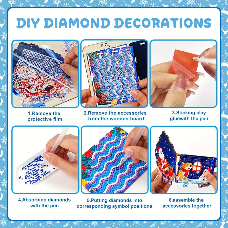 Skapa ditt alldeles egna glittrande mästerverk med detta 5D-diamantmålningskit. Processen innebär att du placerar färgglada strass på det fördesignade trähuset, vilket ger ditt hem en festlig touch. ✨🎄