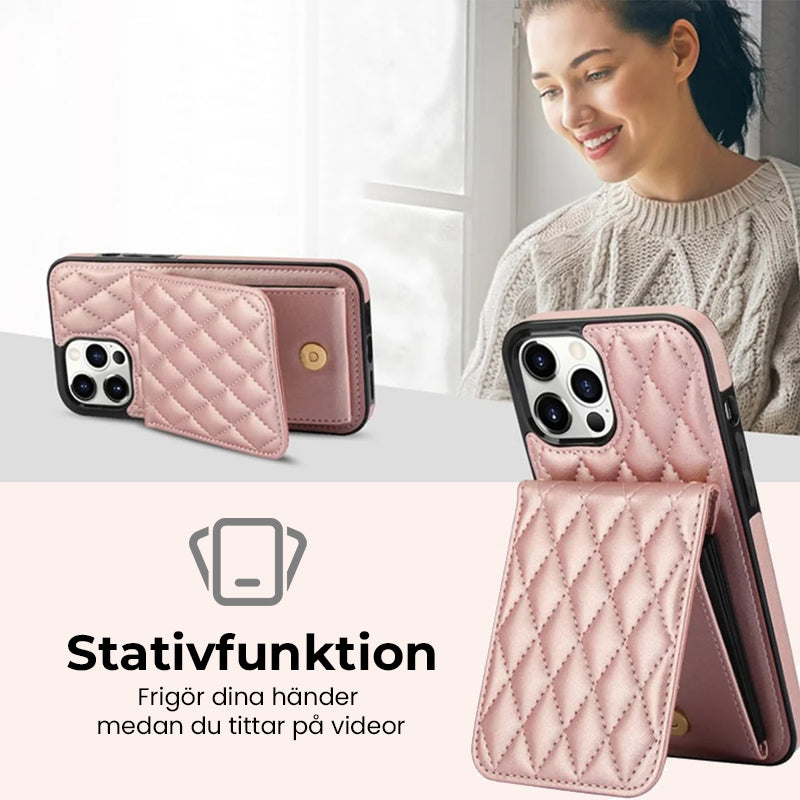 Ge din telefon en touch av elegans! Detta telefonfodral har en unik diamantmönsterdesign och utsökt roséguld, vilket ger en perfekt blandning av stil och praktiskhet. Den inbyggda korthållaren ger praktisk förvaring för bankkort, ID-kort etc., vilket möjliggör enkel resa utan att behöva en plånbok!