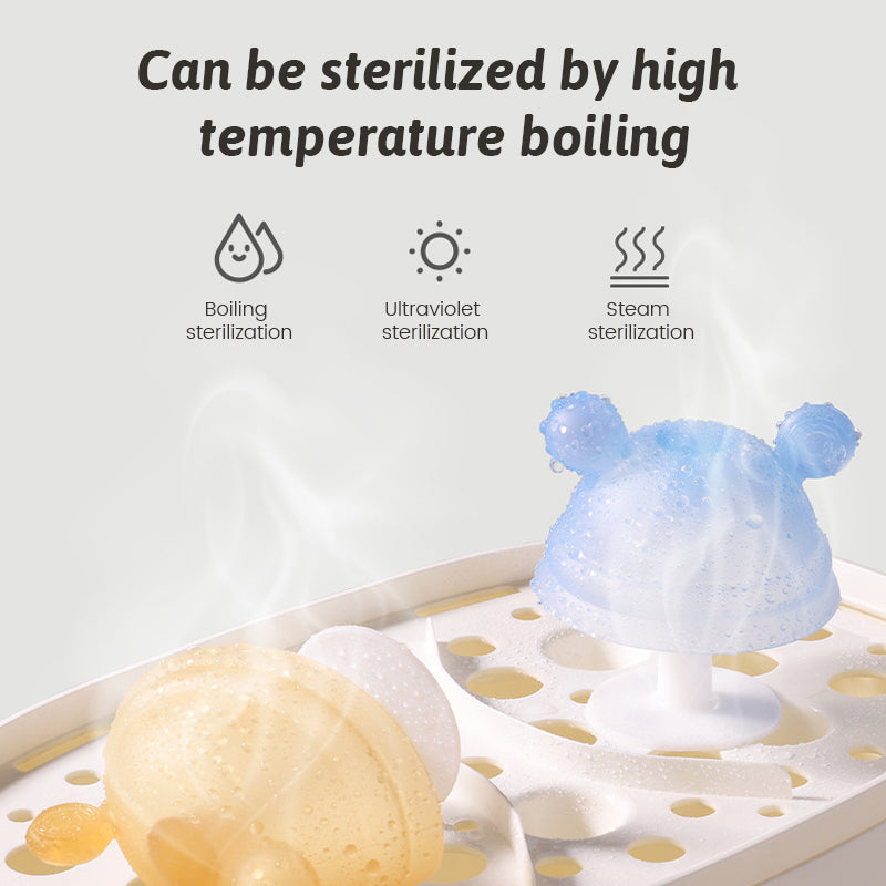 â Livsmedelskvalitetssilikon: sĂ€ker och giftfri, mjuk och elastisk, bekymmersfri för bebisar att tugga.