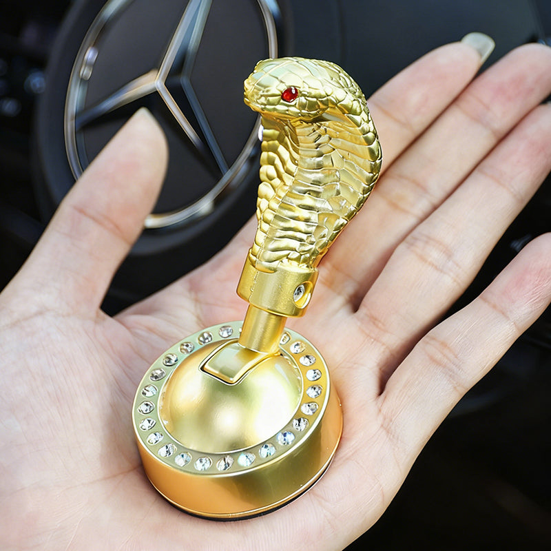 Skippa den trĂ„kiga fabriksknappen mot en spak i metallisk design med ormtema! Den detaljerade ormhuvudformen och den eleganta metallfinishen ger din interiör sportig lyx â varje nystart blir en liten, elegant ritual som visar upp din unika smak.